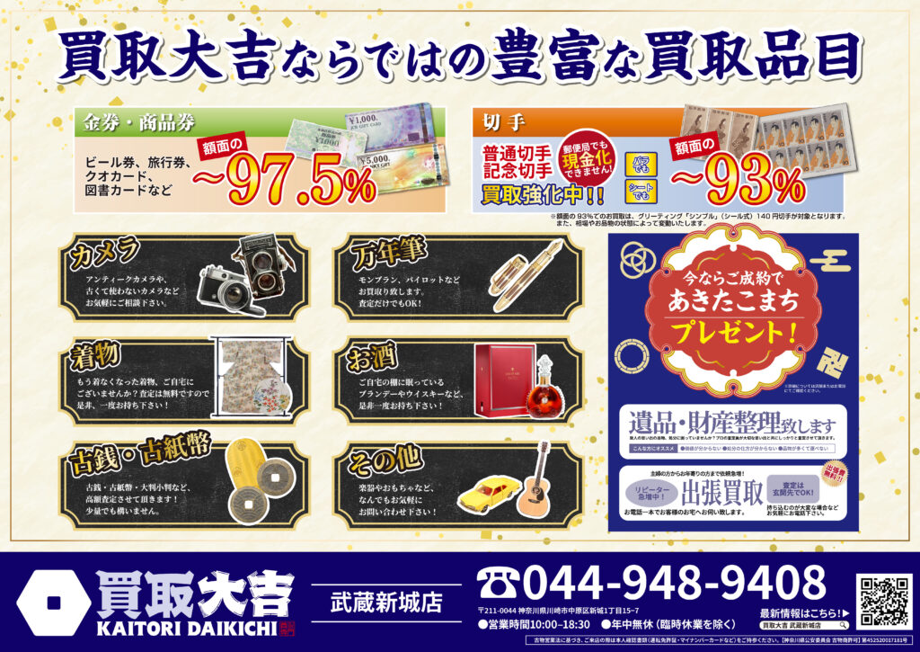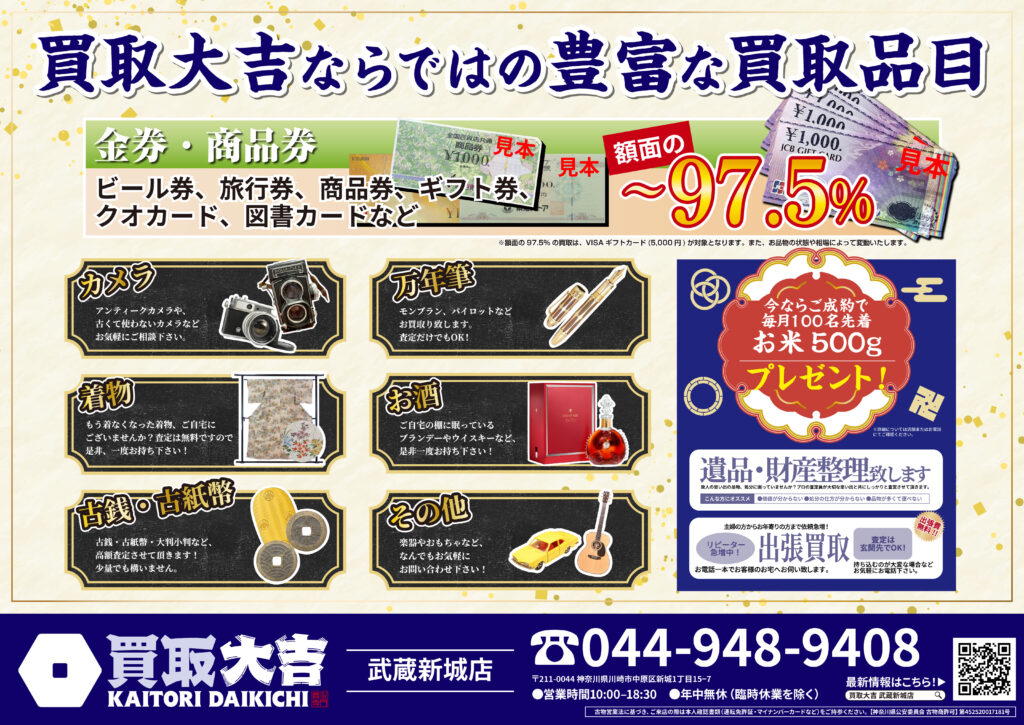 金・貴金属・ブランド品はもちろん、お値段がつくか迷われているものも是非お持ちください。